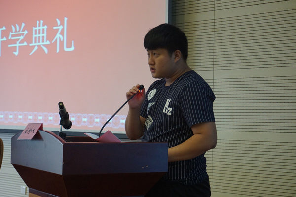 典礼上,首先由2017级德语班新生代表李佳松和IPMC硕士预科班新生代表杨玉兰进行了发言,二位同学首先感谢中央财经大学国际教育中心给大家提供了这样优秀的平台,拥有这样的机会真是万分幸运,自己一定会好好珍惜机会。是共同的梦想引领大家来到了这里,这种相聚是缘分,希望大家在这里一如既往地为共同的梦想继续奋斗,一年后的大家都能收获成功的喜悦,走向更高更远的地方。
