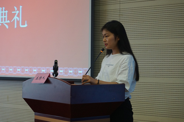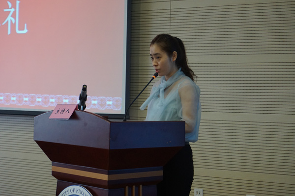 典礼上,首先由2017级德语班新生代表李佳松和IPMC硕士预科班新生代表杨玉兰进行了发言,二位同学首先感谢中央财经大学国际教育中心给大家提供了这样优秀的平台,拥有这样的机会真是万分幸运,自己一定会好好珍惜机会。是共同的梦想引领大家来到了这里,这种相聚是缘分,希望大家在这里一如既往地为共同的梦想继续奋斗,一年后的大家都能收获成功的喜悦,走向更高更远的地方。