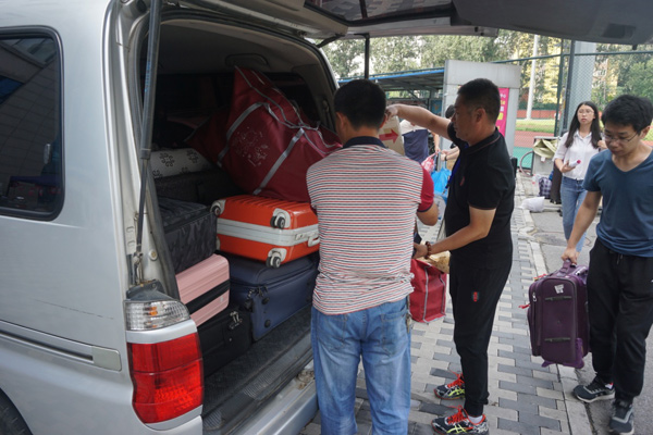 老师帮助同学搬运行李